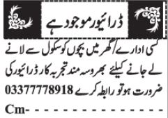 Jang Sunday Classified Ads 17 Nov 2024 For Driving Staff