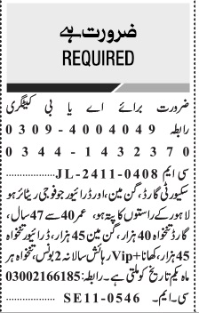 Private Company Lahore, lahore Punjab Pakistan invites applications from eligible candidates for the post of driver, security guard, gun man and pharmacist as per advertisement of November 18, 2024 published in daily Jang Newspaper. Matric, B Pharmacy, Intermediate and Middle etc. educational qualification will be preferred.