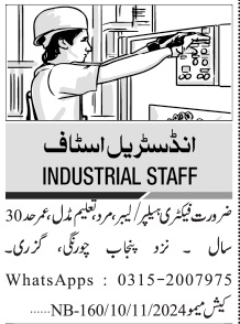 Jang Sunday Classified Ads 17 Nov 2024 For Industrial Staff
