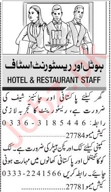 Jang Sunday Classified Ads 17 Sep 2023 For Restaurant Staff