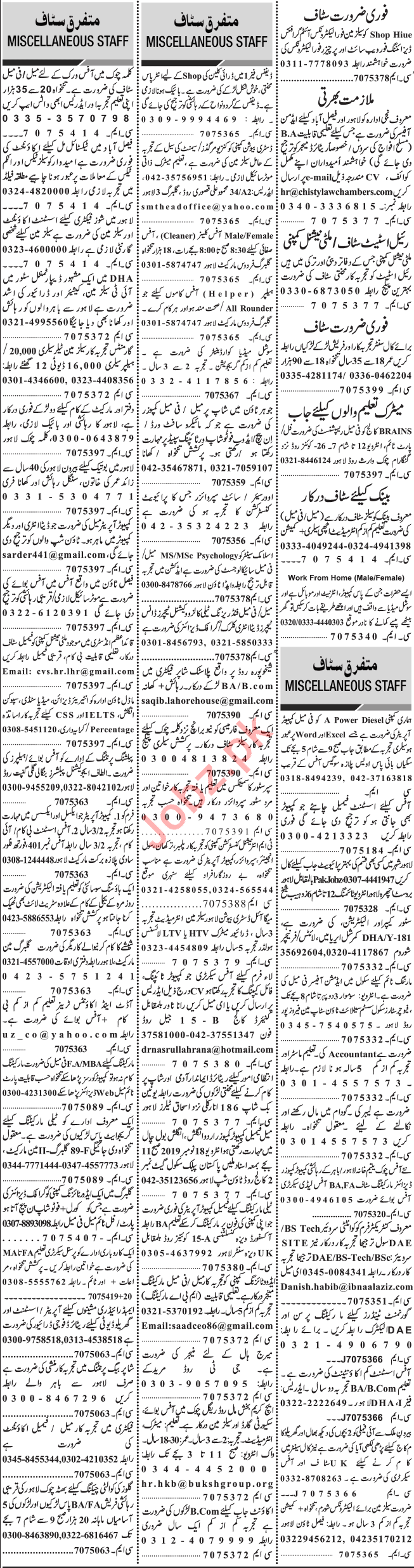 Salesman, Insurance Agent, Sales Officer, Cook, Security Guard, Watchman, Driver, Kitchen Helper, Dish Washer, Loader, Waiter, Receptionist, Supervisor, Chef, Maid, Assistant Nurse, LHV, OT Technician, Public Dealing Expert, Office Assistant, Field Officer, Supply Man, Doctor, Hospital Administrator, Clerk, Admin Officer, Data Entry Operator, Cashier, Manager, Sales Staff, Computer Operator, Careem Driver, Uber Driver, Marketing Staff, Delivery Boy, Call Operator, Office Assistant, Hotel Manager, Sweeper, Recovery Officer, Pharmacist, Welder, Electrician needs in well reputed companies.