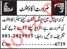 Latest Hospital Clinic Accounting Posts Quetta 2025