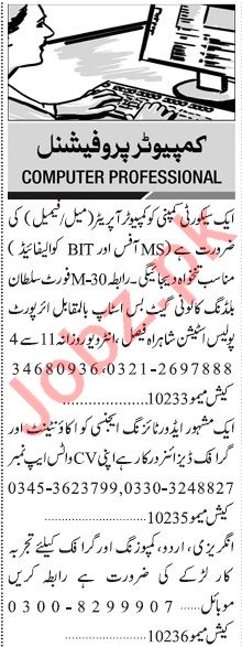 Jang Sunday Classified Ads 18 April 2021 for Computer Staff