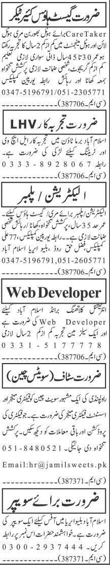 Private Company invites applications for job positions advertised in daily Jang dated 18 August 2024 for following vacancies in Islamabad, rawalpindi and murree Islamabad Pakistan.