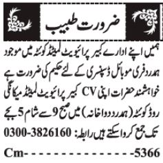 Vacant posts including hakeem are announced in Kabir Mart & Pharmacy Quetta, quetta Balochistan Pakistan as per 18 August 2024 advertisement in daily Jang Newspaper. Candidates with Bachelor, Others and Intermediate etc. educational background will be preferred.