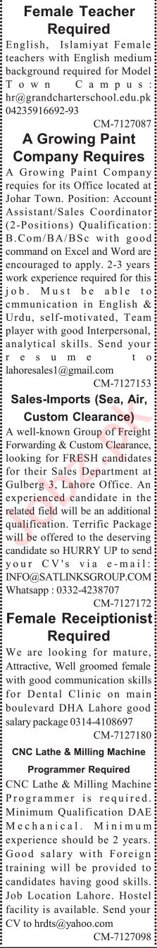 Private Company invites applications for job positions advertised in daily Jang dated 19 December 2022 for following vacancies in Lahore, lahore Punjab Pakistan.