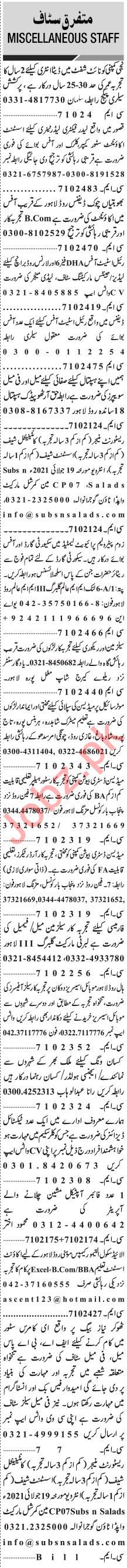 Jang Sunday Classified Ads 18 July 2021 for General Staff