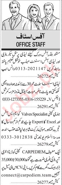 Private Company invites applications for job positions advertised in daily Jang dated 19 June 2023 for following vacancies in Karachi, karachi Sindh Pakistan.