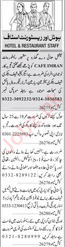 Jang Sunday Classified Ads 18 June 2023 For Restaurant Staff