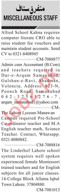 Jang Sunday Classified Ads 18 Oct 2020 For Admin Staff