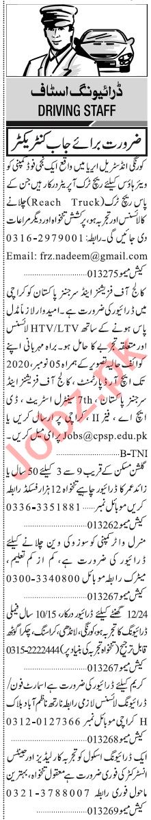 Jang Sunday Classified Ads 18 Oct 2020 For Driving Staff