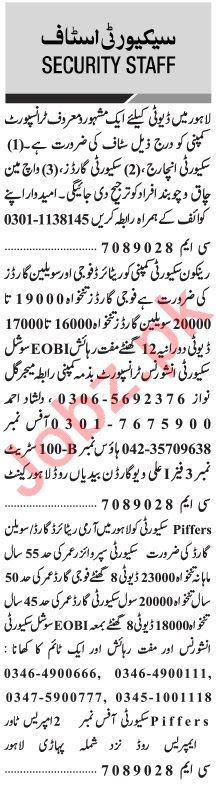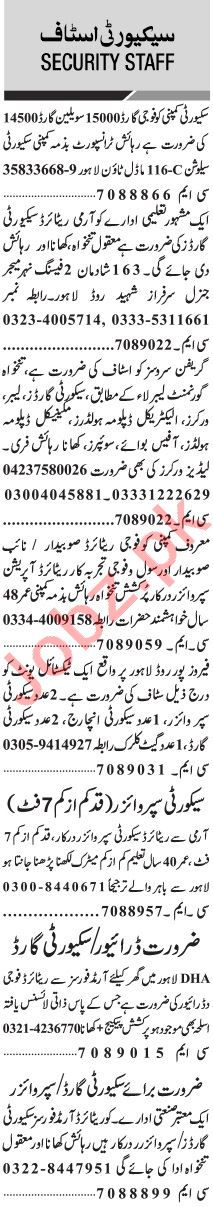 Jang Sunday Classified Ads 18 Oct 2020 For Security Staff