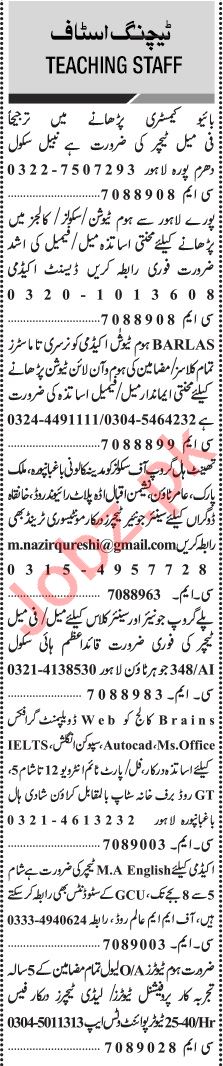 Jang Sunday Classified Ads 18 Oct 2020 For Teaching Staff