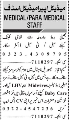 Jang Sunday Classified Ads 19 Dec 2021 For Medical Staff