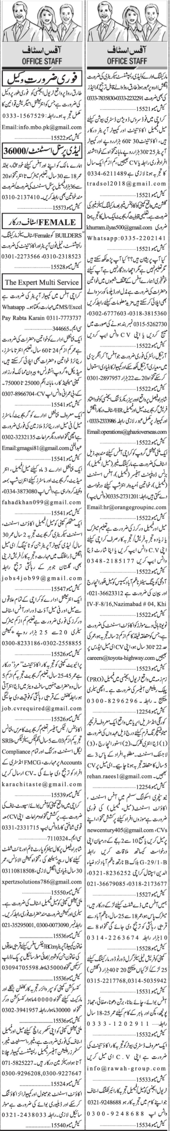 Jang Sunday Classified Ads 19 Dec 2021 for Office Staff