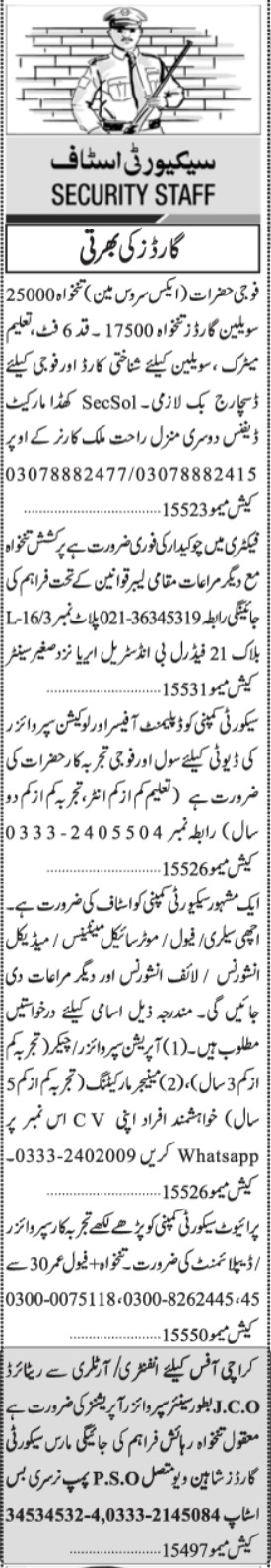 Jang Sunday Classified Ads 19 Dec 2021 for Security Staff