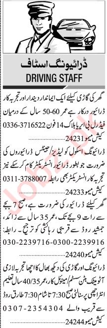 Jang Sunday Classified Ads 19 Feb 2023 For Driving Staff
