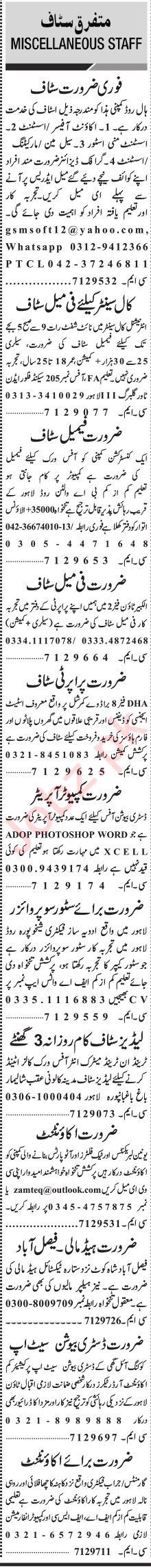 Private Company jobs advertisement dated about 20 February 2023 in daily Jang Newspaper invites application for the vacant post of store supervisor, marketing assistant, account officer, order taker, store keeper, computer operator, assistant mini store, graphic designer, real estate staff, call center agent, salesman, cashier, assistant, real estate agent, accountant and head mali in Lahore, faisalabad Punjab Pakistan. Intermediate, Matric, Middle and Bachelor etc. educational qualification will be preferred.