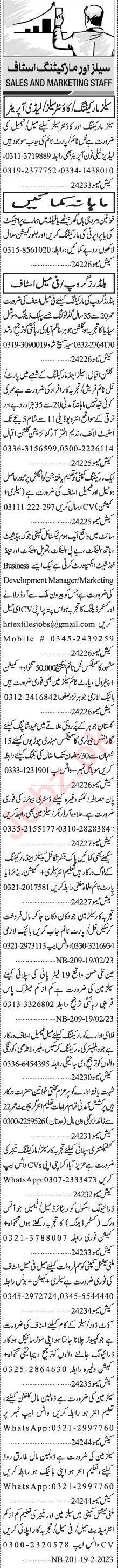 Jang Sunday Classified Ads 19 Feb 2023 for Sales Staff