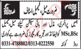 Private School invites applications for job positions advertised in daily Jang dated 20 February 2023 for following vacancies in Quetta, quetta Balochistan Pakistan.