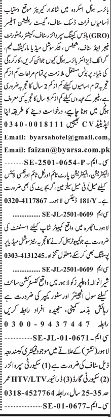 Private Company invites applications for job positions advertised in daily Jang dated 20 January 2025 for following vacancies in Lahore, skardu Punjab Pakistan.