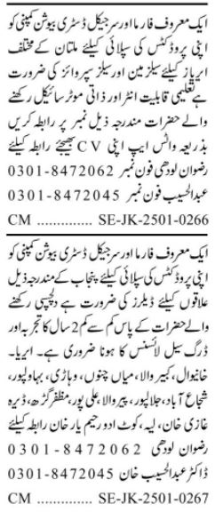 Pharmaceutical Company invites applications for job positions advertised in daily Jang dated 20 January 2025 for following vacancies in Multan, multan Punjab Pakistan.