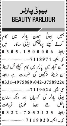 Beauty Parlor latest Classifieds Business Staff jobs and others can be applied till 16 July 2022 or as per closing date in newspaper ad. Read complete ad online to know how to apply on latest Beauty Parlor job opportunities.
