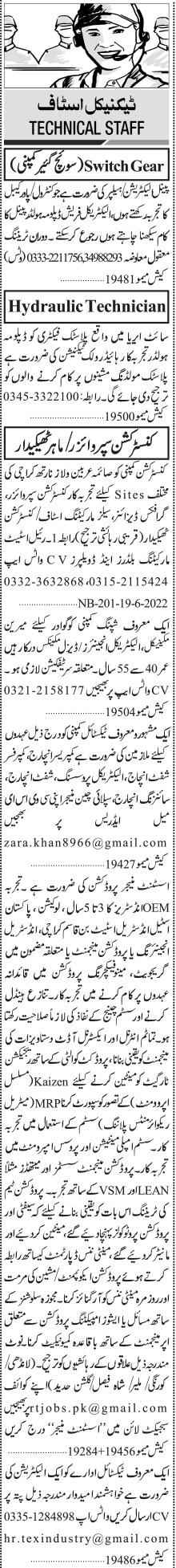 Jang Sunday Classified Ads 19 June 2022 For Manufacturing