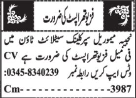 Vacant posts including physiotherapist are announced in Hospital Clinic Quetta, quetta Balochistan Pakistan as per 20 June 2022 advertisement in daily Jang Newspaper. Persons with Master and Bachelor etc. education can apply.