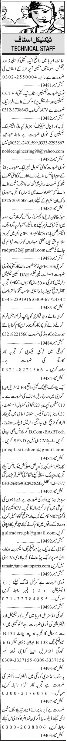 Jang Sunday Classified Ads 19 June 2022 For Technical Staff