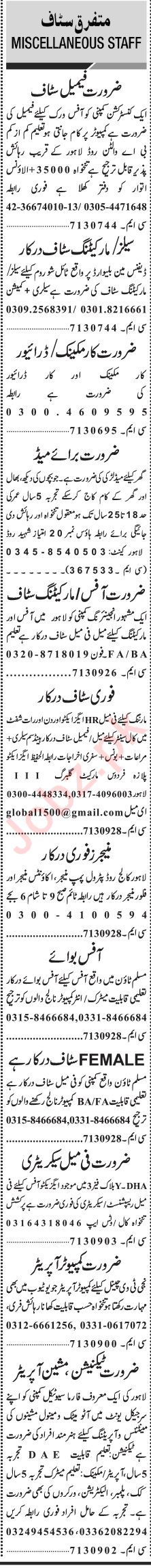 Private Company Lahore, lahore Punjab Pakistan invites applications from eligible candidates for the post of hr executive, accounts manager, floor manager, driver, manager, worker, machine operator, pump manager, electrician, receptionist, technician, marketing officer, sales staff, cook, car driver, office boy, female secretary, secretary, car mechanic, marketing staff, plumber, computer operator, office staff and maid as per advertisement of March 20, 2023 published in daily Jang Newspaper. Middle, Bachelor, Intermediate and Matric etc. educational qualification will be preferred.