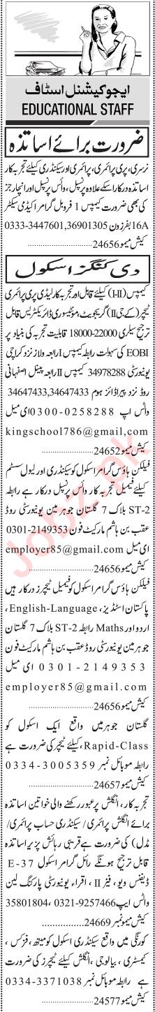 Jang Sunday Classified Ads 19 March 2023 for Teaching Staff