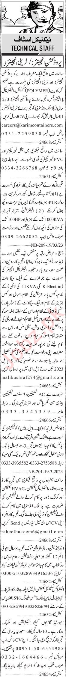 Jang Sunday Classified Ads 19 March 2023 For Technical Staff