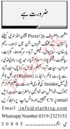 Jang Sunday Classified Ads 19 May 2024 For Delivery Staff