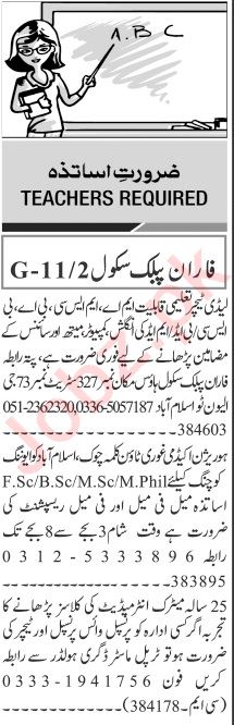 Private School jobs advertisement dated about 19 May 2024 in daily Jang Newspaper invites application for the vacant post of female receptionist, computer teacher, principal, female teacher, teacher, english teacher, science teacher, maths teacher and vice principal in Islamabad, islamabad Islamabad Pakistan. Persons with BA, MA, Bachelor, M.sc, Master and B.ed etc. education can apply.