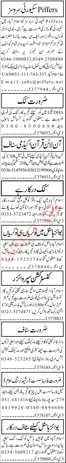 Private Company jobs advertisement dated about 20 November 2023 in daily Jang Newspaper invites application for the vacant post of marketing staff, customer service representative, fauji guard, tractor driver, security guard, italian chef, chowkidar, kitchen helper, cook helper, cook, pharmacist, hostel warden, civil guard, construction supervisor, csr, sweeper, helper and chinese cook in Islamabad, rawalpindi Islamabad Pakistan. Educational qualifications required Intermediate, BA, B.com, Bachelor, Matric, Middle and DAE etc.