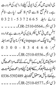 Jang Sunday Classified Ads 19 Oct 2025 For Admin Staff