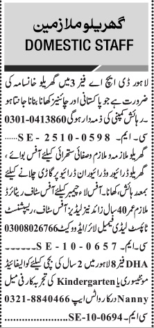 Jang Sunday Classified Ads 19 Oct 2025 For Domestic Staff