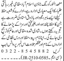 Educational Institute invites applications for job positions advertised in daily Jang dated 20 October 2025 for following vacancies in Korang Town Islamabad, islamabad Islamabad Pakistan.
