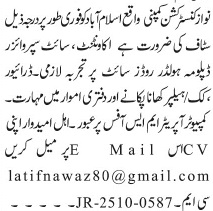 Nawaz Construction Company NCC is looking for candidates for following posts as per job advertisement published in daily Jang Newspaper of October 20, 2025 for location Islamabad, islamabad Islamabad Pakistan: