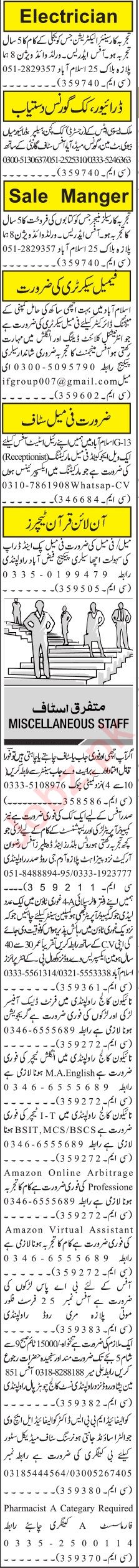 Private Company is looking for candidates for following posts as per job advertisement published in daily Jang Newspaper of September 19, 2022 for location Islamabad, islamabad Islamabad Pakistan: