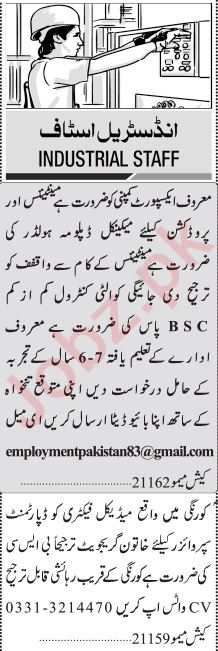 Jang Sunday Classified Ads 19 Sept 2022 For Factory Staff