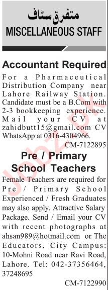 Private Company invites applications for job positions advertised in daily Jang dated 19 September 2022 for following vacancies in Lahore, lahore Punjab Pakistan.