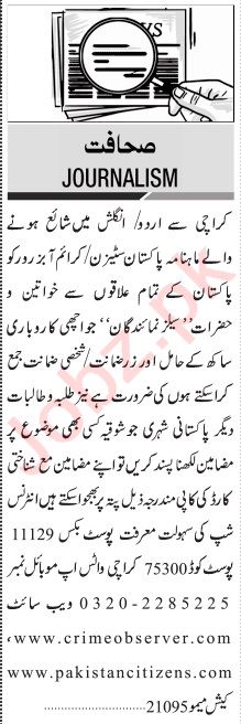 Media Sector invites applications for job positions advertised in daily Jang dated 19 September 2022 for following vacancies in Karachi, karachi Sindh Pakistan.