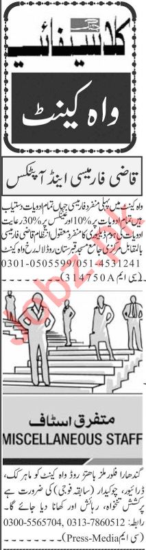 Jang Sunday Classified Ads 19th July 2020 for Office Staff