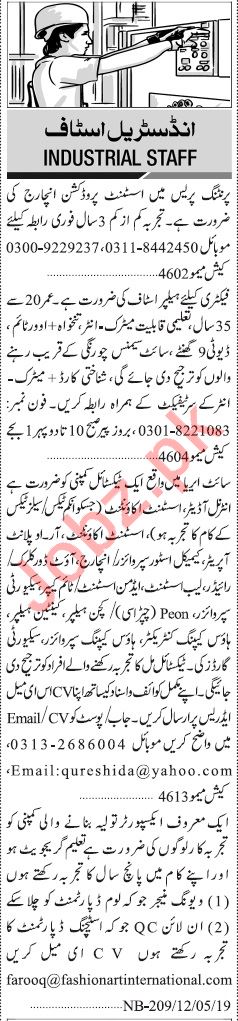 Jang Sunday Classified Ads 19th May 2019 For Industrial