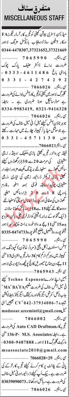 Jang Sunday Classified Ads 19th May 2019 For Multiple Staff
