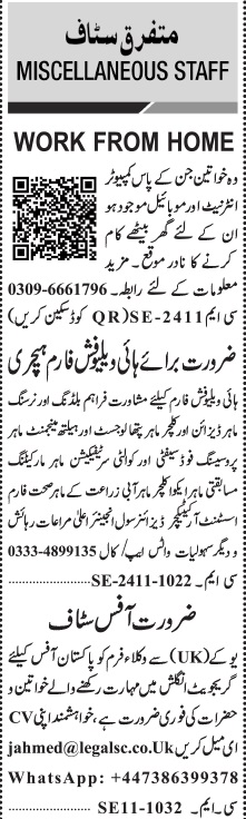 Jang Sunday Classified Ads 1st Dec 2024 For Admin Staff