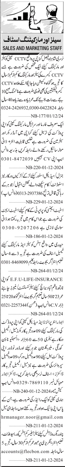 Jang Sunday Classified Ads 1st Dec 2024 for Marketing Staff