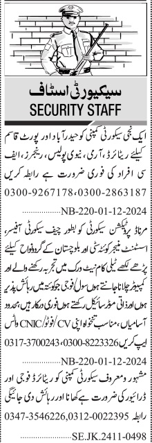 Jang Sunday Classified Ads 1st Dec 2024 for Security Staff